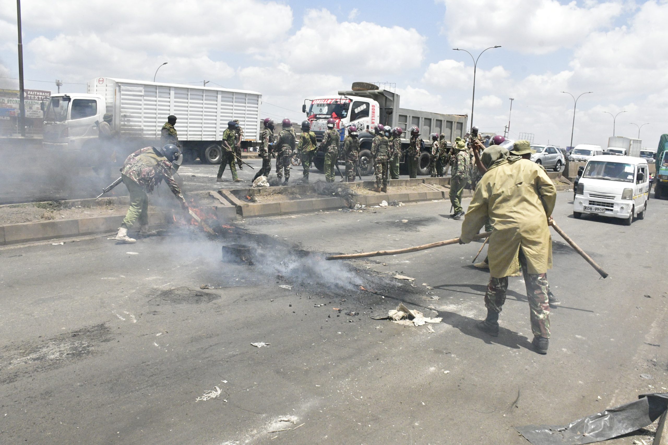Police on Thursday were forced to fire tear gas at traders at Githurai Market along the Thika Superhighway to disperse them after they set tyres ablaze and blocked the highway.